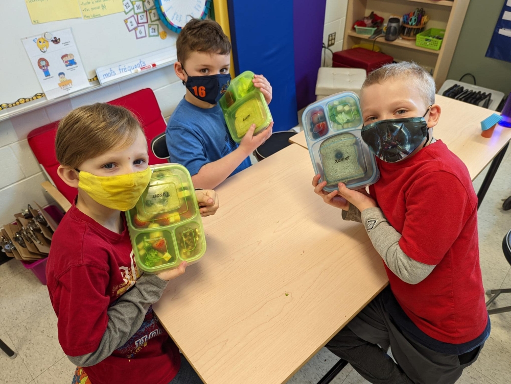 En cette journée du carnaval au thème sourire, habillement bizarre et drôle, nos amis de la 2e année ont fait leur propre boite à lunch. Les élèves ont discuté avec une diététiste, Pascale Richard, quelques semaines passées. Ils ont, par la suite, fait leur propre plan pour leur boite à lunch santé. Et aujourd’hui, ils ont réalisé leur plan en fabriquant leur diner eux-mêmes. Le but des élèves est d’aider les parents à faire leur boite à lunch. WOW, quel beau projet !